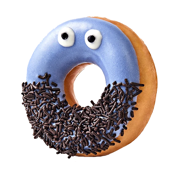 Пончик с банановым кремом в сахарной глазури с воздушным рисом и стеклянной карамелью.