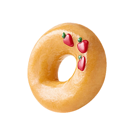 Донатс состоит из мягкого воздушного теста, приготовленного по оригинальному рецепту Krispy Kreme, и покрыт глянцевой клубничной глазурью. Она имеет нежный аромат свежей клубники, добавляя пончику ягодный вкус, и яркий красный сочный оттенок.